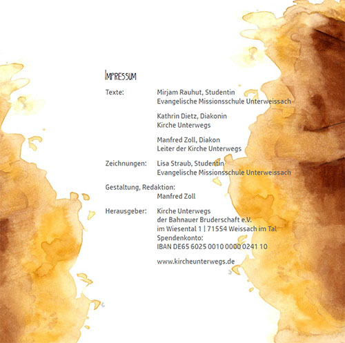 Auf 28 Seiten enthält das Heft Texte und Bilder, die sich gegenseitig interpretieren und dabei viele Impulse auf dem Weg in die innere Heimat geben.