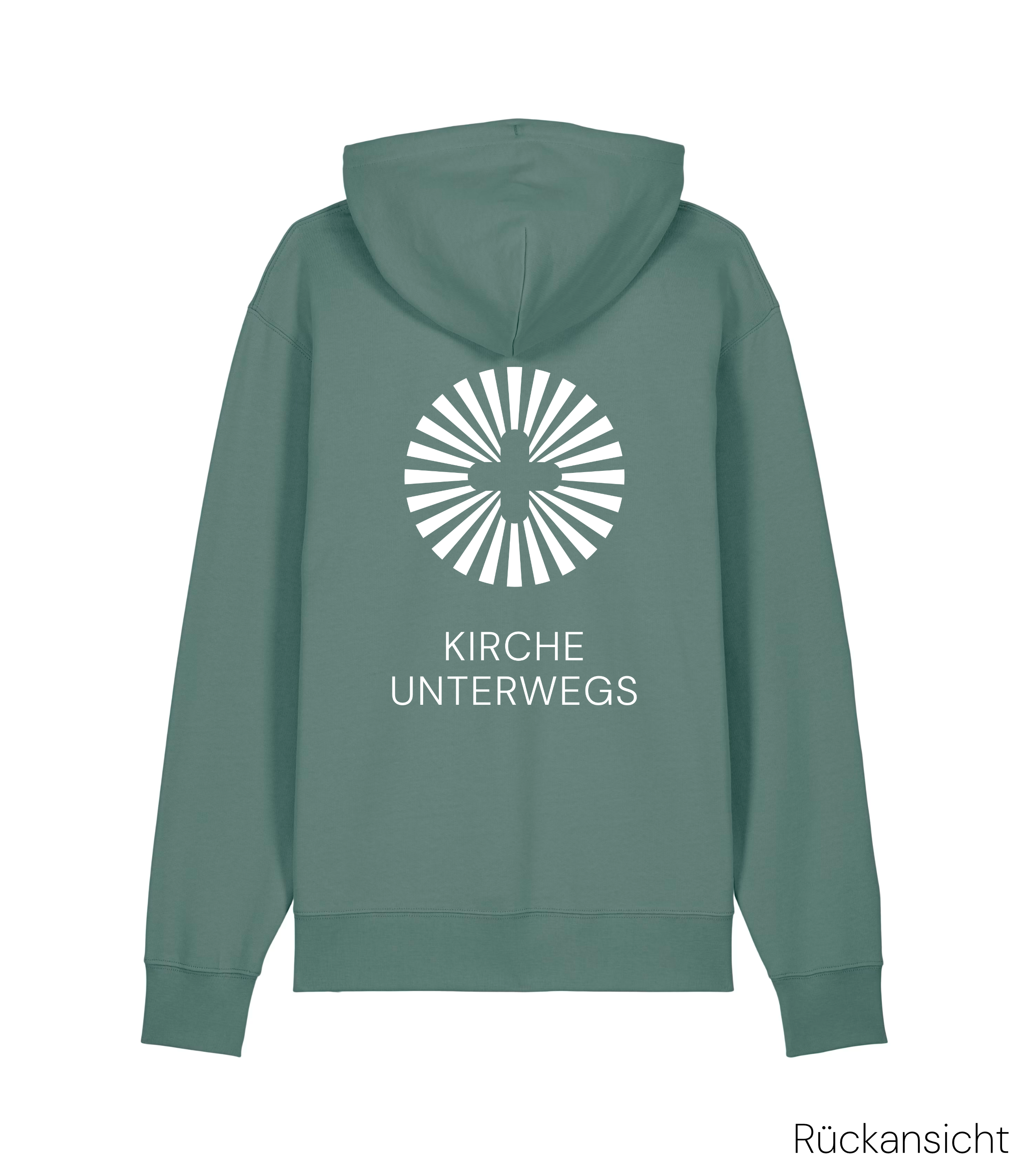 - Druck: Sonnenkreuz & "Kirche Unterwegs"-Schriftzug (Siebdruck mit ökologischer Farbe)
