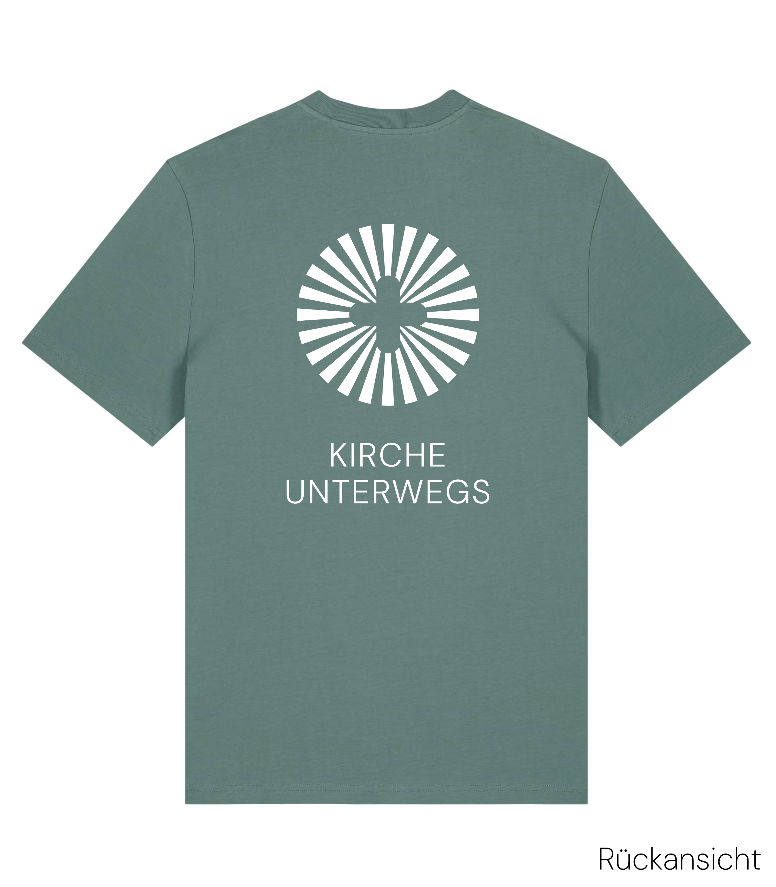 - Druck: Sonnenkreuz & "Kirche Unterwegs"-Schriftzug (Siebdruck mit ökologischer Farbe)