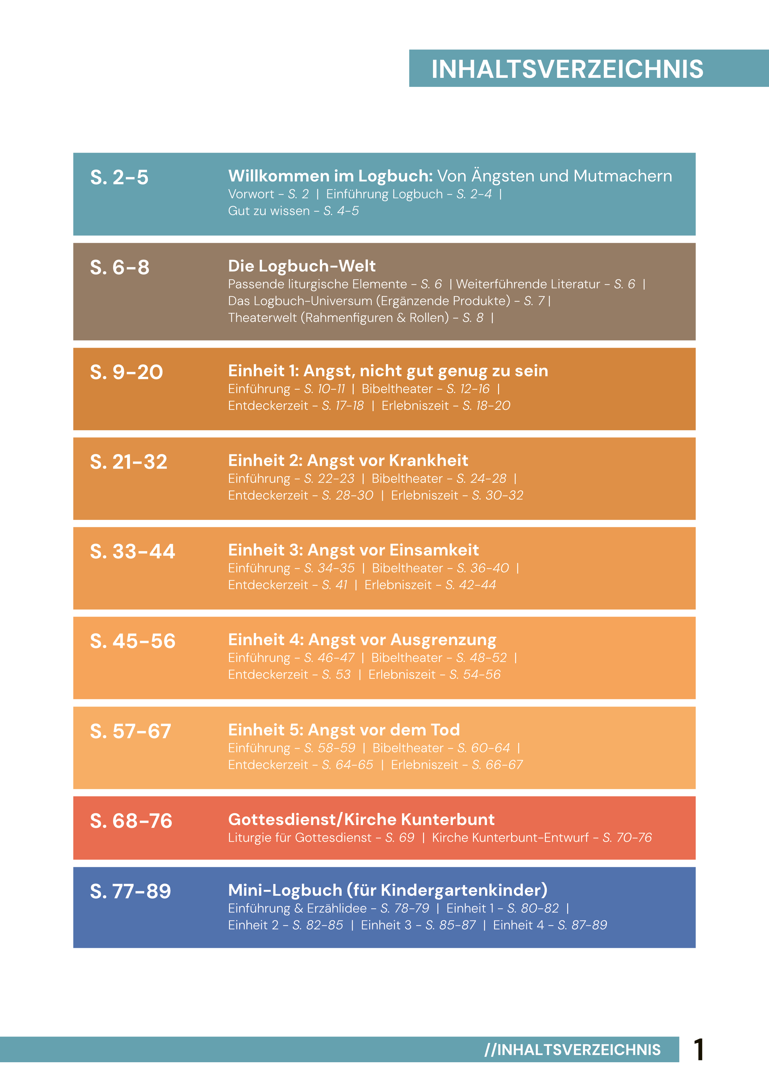 - Für alle Altersgruppen: Spezielle Bausteine für Kinder von 3 bis 5 Jahren sowie Ideen für größere Gruppen (Kinderbibelwochen, Freizeiten, Jungscharstunden, Schulprojekte, Kindergottesdienste u.v.m.).