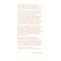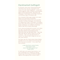 Wer Dankbarkeit einübt, verändert sein Lebensgefühl. Das Leben wird leichter, zufriedener und hoffnungsvoller. Darum lohnt es sich, eine dankbare Haltung einzuüben und auch für Selbstverständliches Danke zu sagen – Menschen gegenüber und Gott. Dankbarkeit verbindet, schenkt Nähe und verleiht Flügel.