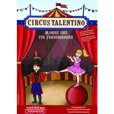 Zip-Datei mit bearbeitbaren Texten der Bibeltheater und Grafiken für die Werbung zur Kinderstadt-KiBiWo "Manege frei für Friedenskinder.