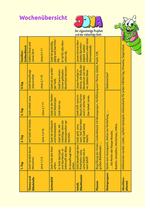 Die Arbeitshilfe für Kinderbibelwoche enthält vier biblische Erlebnisprogramme für Kinder von 6-12 Jahren und einen Entwurf für einen Familiengottesdienst. Gesprächsimpulse, Spiele und Bastelideen komplettieren das Programm.