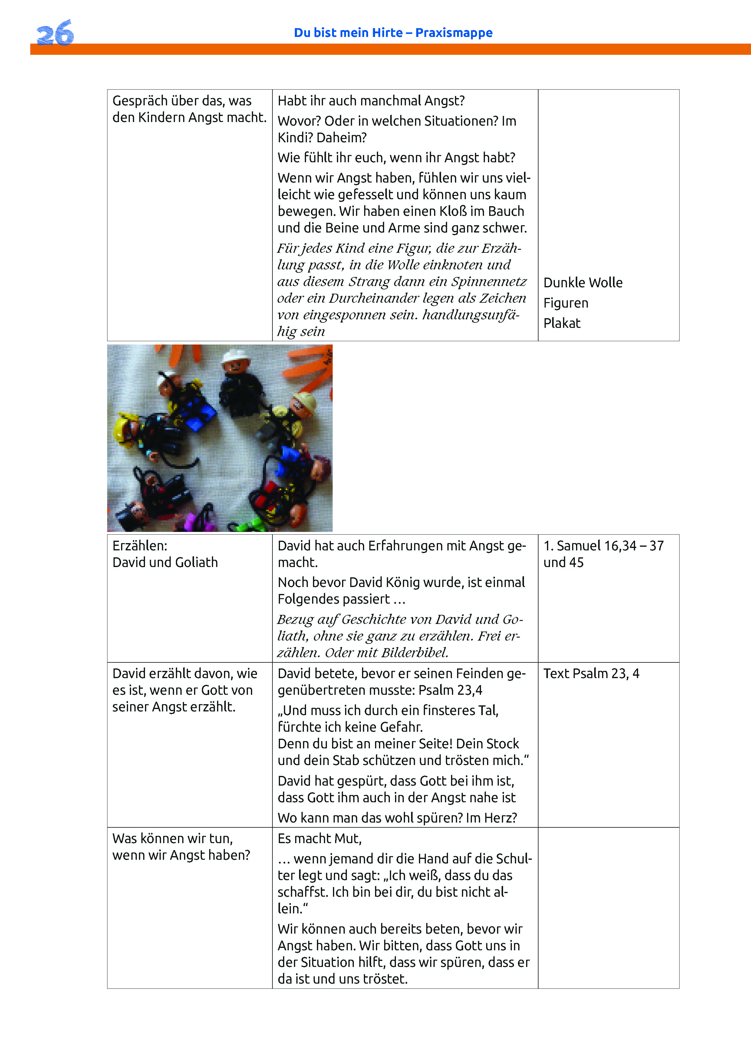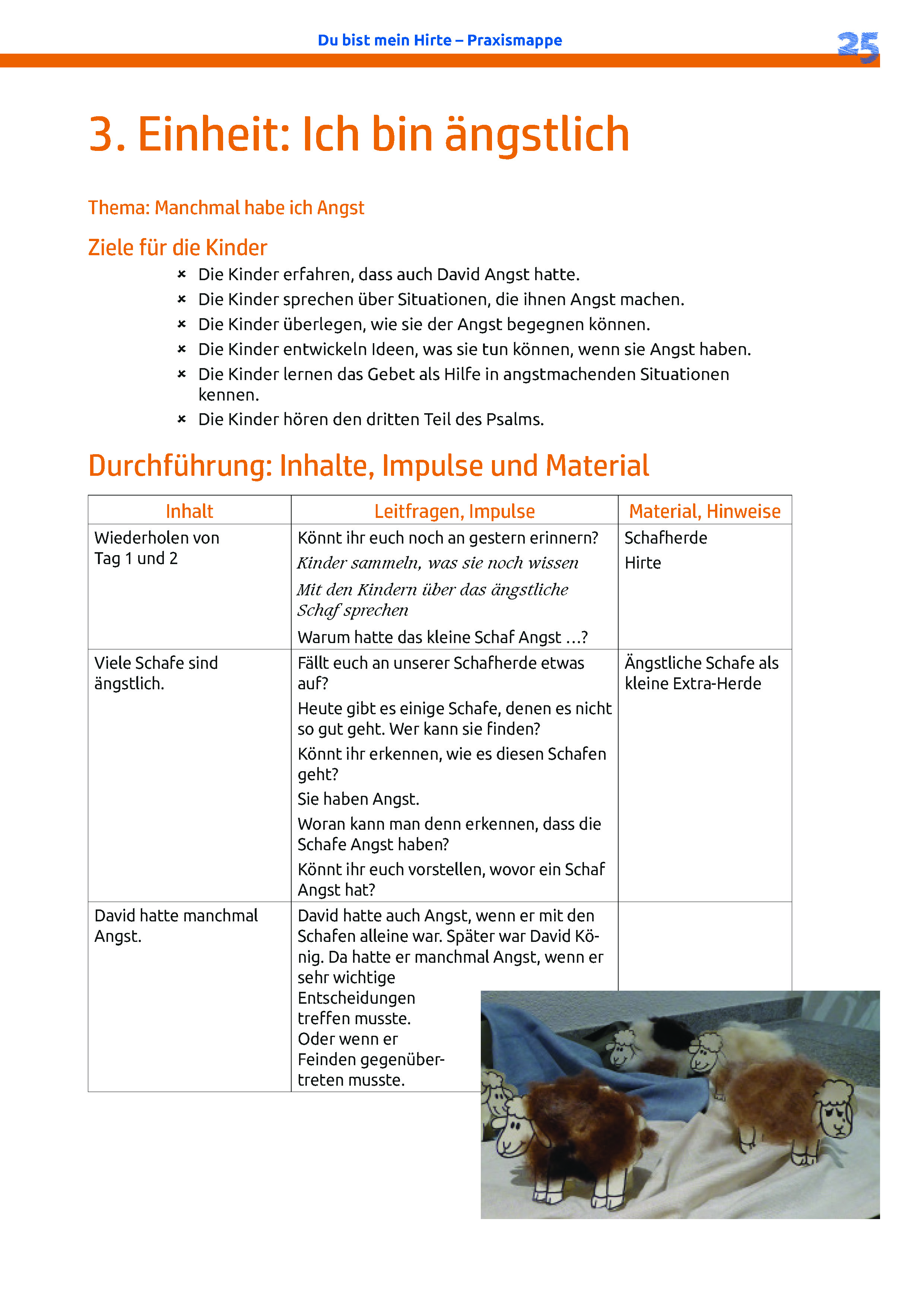 2. Einheit: Psalm 23 Vers 1b-3: Ich bin traurig. Was Kinder traurig und wütend macht. Und was ihnen hilft, sich wieder zu freuen. Vom Hirtengebet zu eigenen Gebeten.