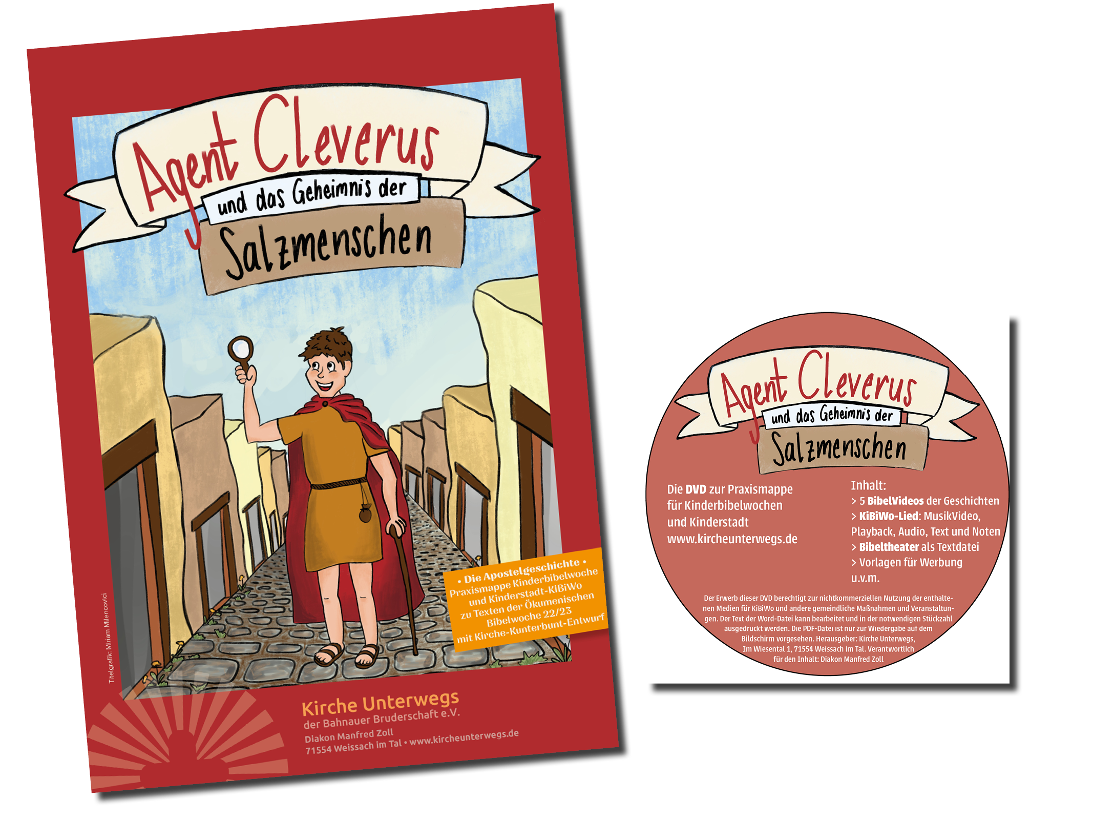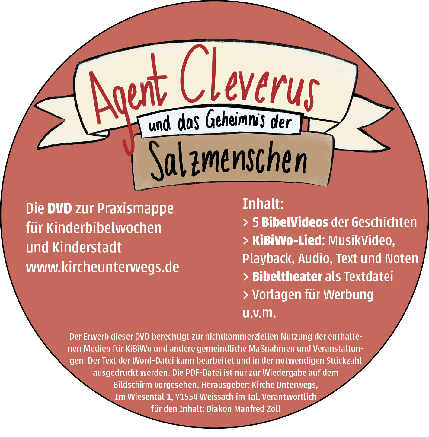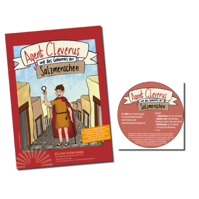 Die Arbeitshilfe und die DVD mit den BibelVideos zur Kinderbibelwoche Agent Cleverus und das Geheimnis der Salzmenschen.