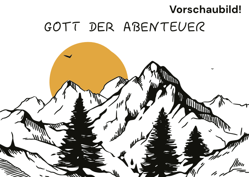 Postkarte mit Schriftzug "Gott der Abenteuer"