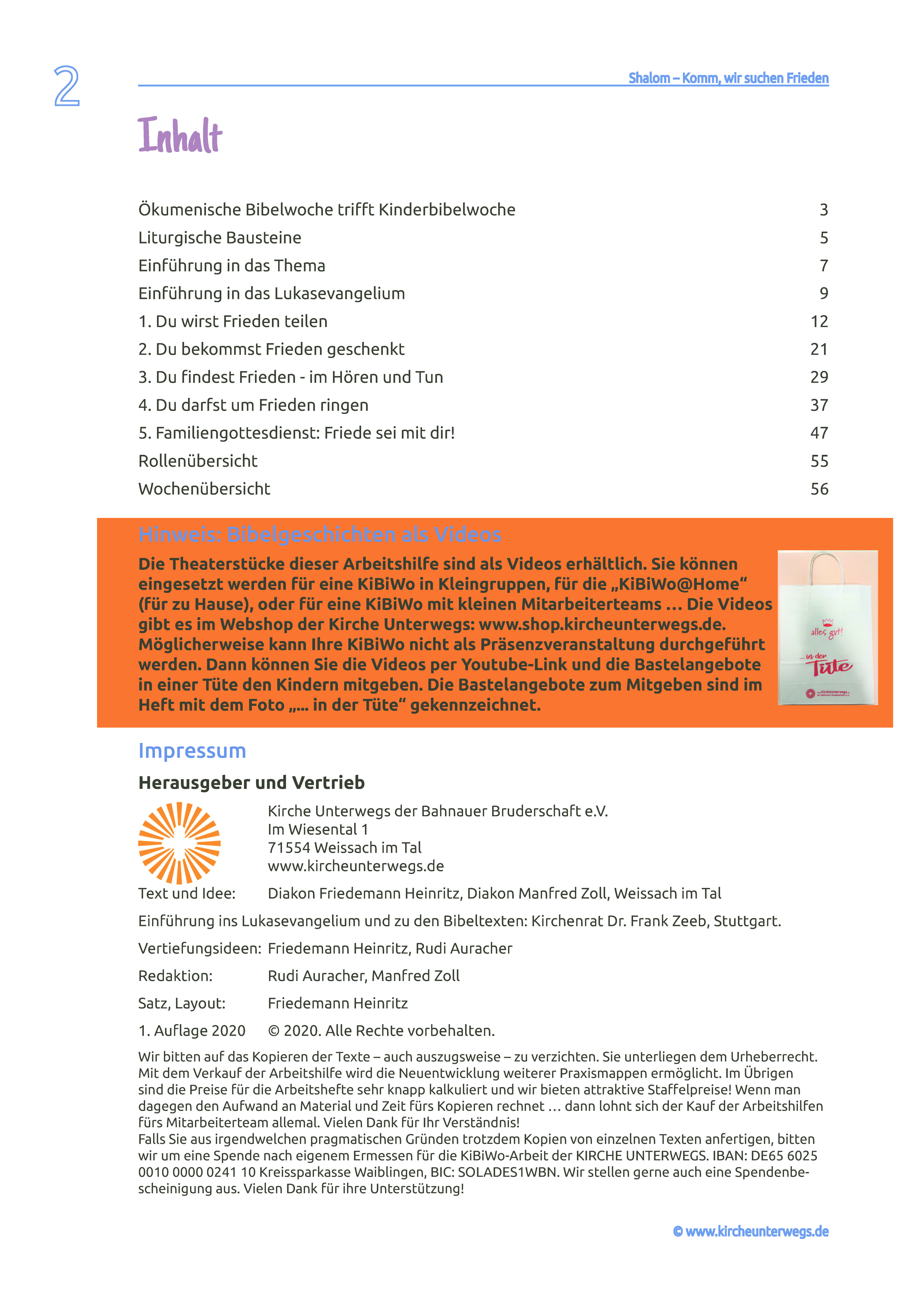 Zur Gestaltung von Online-KiBiWo, KiBiWo in der Tüte oder Kleingruppen-Angebote können Sie zusätzlich unser Medien-Paket zu "Shalom - Komm wir suchen Frieden" bestellen.