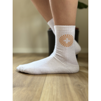 Weiße Tennissocken mit auffälligem, orangenem Sonnenkreuz-Print. (Größe 37–41)