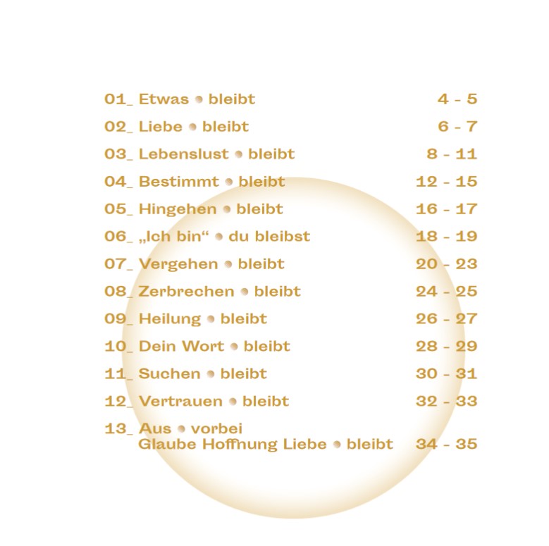 Bilder und Impulse, Visionen und Texte, Ansichten und Einsichten - eine Broschüre voller Leben und Perspektiven! Dass die Erfahrung der Vergänglichkeit bei Gott eine bleibende Perspektive hat, ist eine der Provokationen der Bibel.
